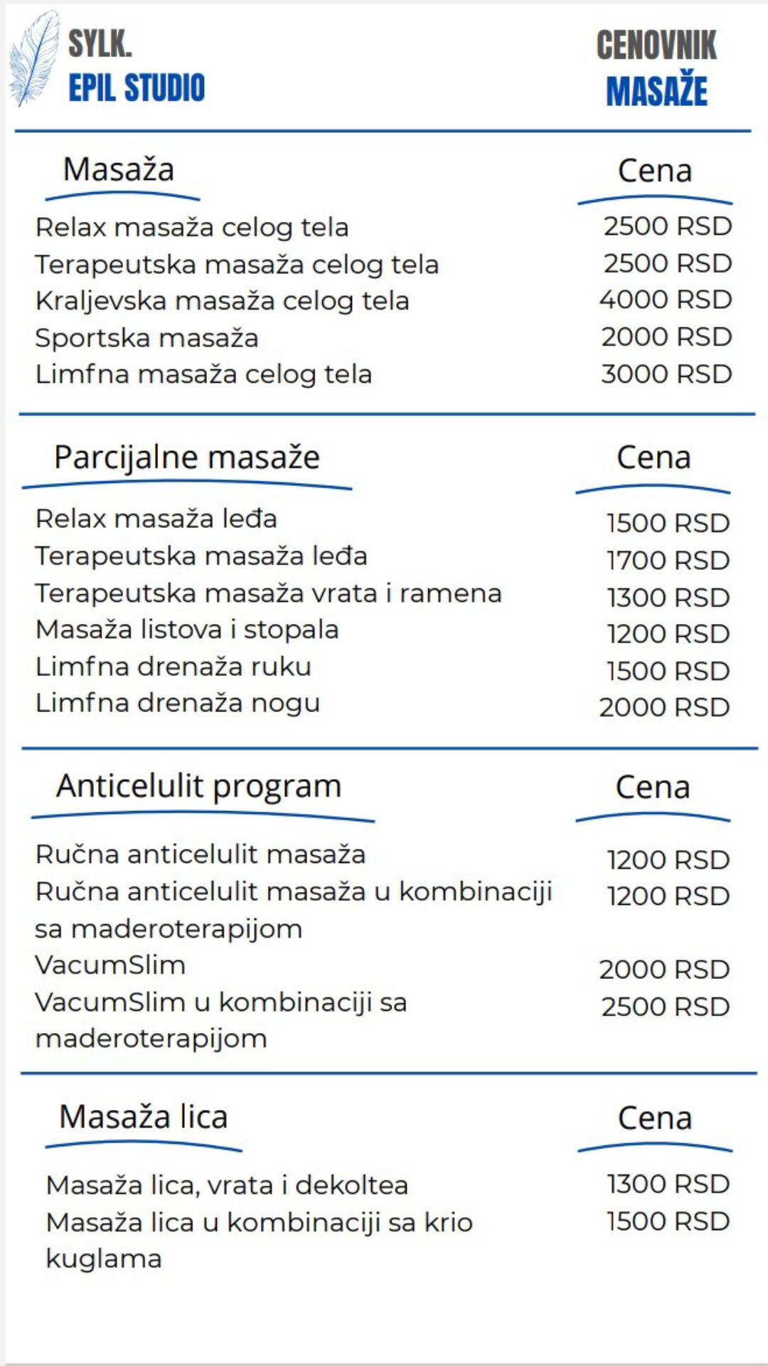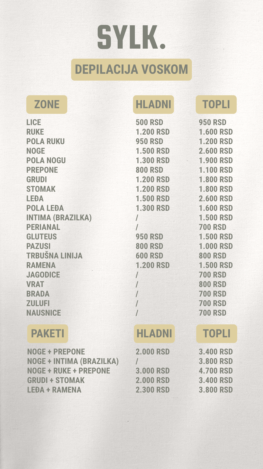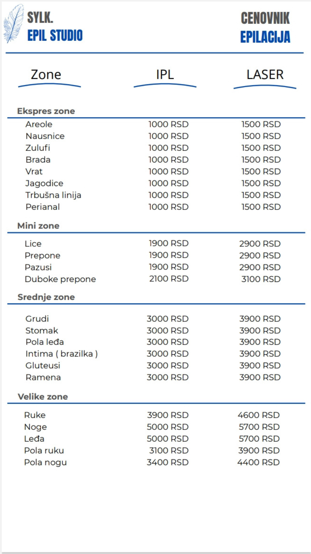 CENOVNIK SYLK. EPIL STUDIO JAGODINA
